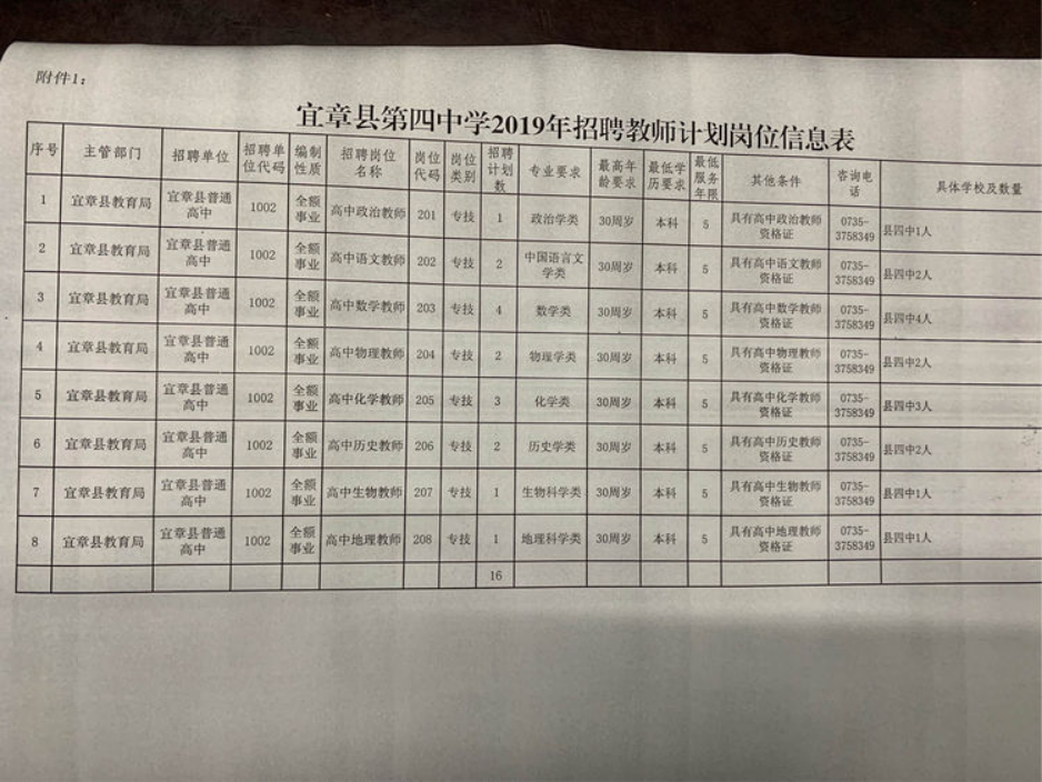 2、另行报名时间及地点:5月29日—31日(上午8:30—12:00,下午15:00—18:00),宜章县教育局人事股308室;