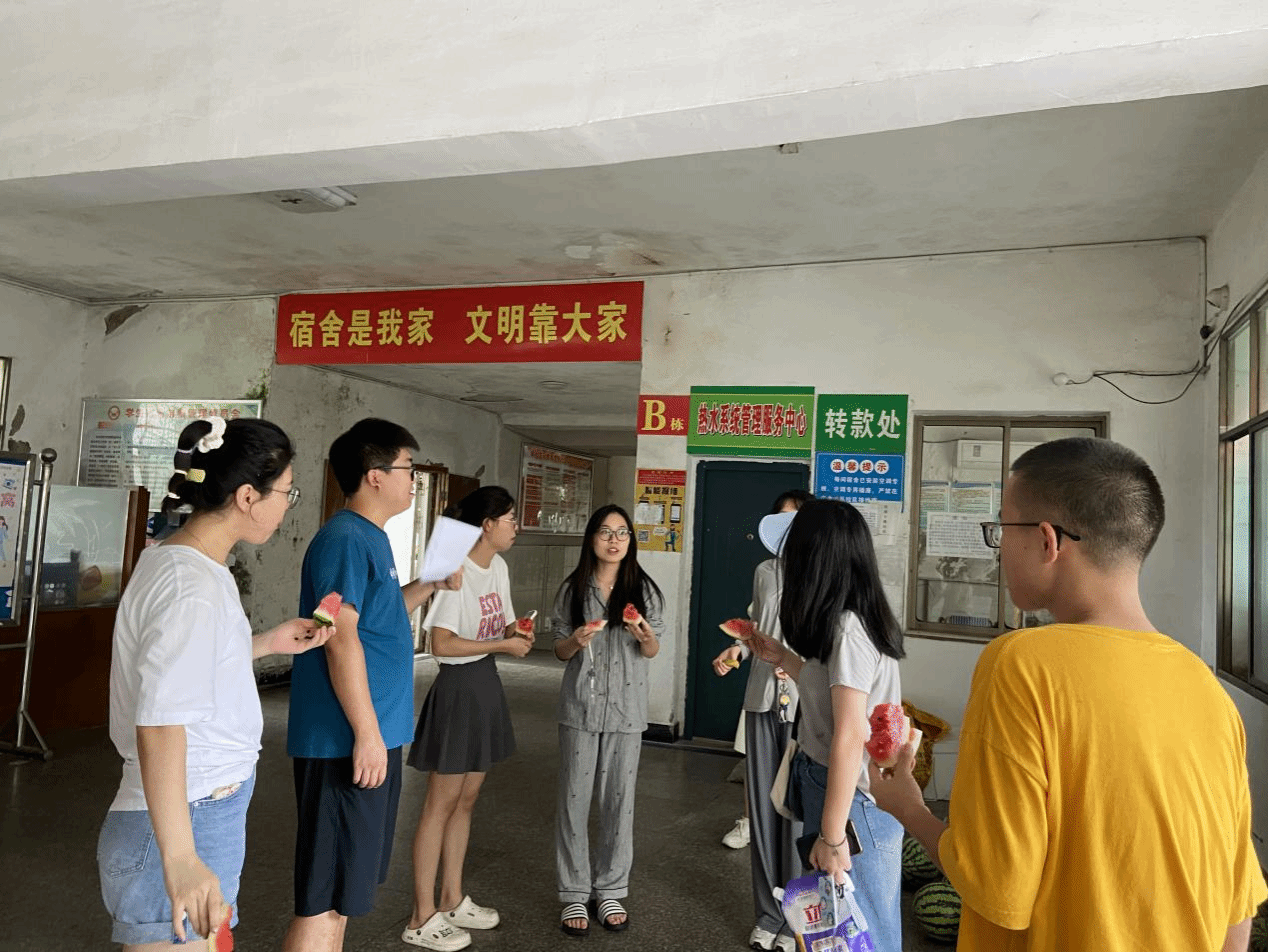 炎炎夏日,雁城高温,考研学子的备考热情也骄阳似火。为鼓励考研学子,坚定考研信心,缓解备考压力,7月23日,辅导员老师刘志伟受学院党政班子委托,到9栋宿舍慰问考研留校学生,为他们送去“考研解暑瓜”。