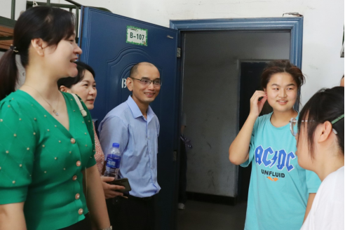 在新生宿舍,学院领导与新生进行了亲切的谈话,送去了节日祝福。贺书记希望同学们尽快适应大学的学习生活环境,要确定新目标,开启新征程,要牢记习主席的话,青春是用来的奋斗的,大学四年要积极上进,学好专业的同时也要学会为人处世,期待大家在外院都能健康快乐地生活和学习。刘院长勉励新生们要对即将开始的大学生活充满信心,做好个人的大学生涯规划,拒绝躺平,在大学四年尽情挥洒青春的汗水,取得应有的收获。欧阳竹副书记询问了新生们的内务开展情况,指出大学生活应该从做好个人内务开始,将宿舍整理好才能舒心生活,安心学习。同学们也表示了对大学生活的憧憬,并热情地向各位老师表达中秋和教师双节的祝福。