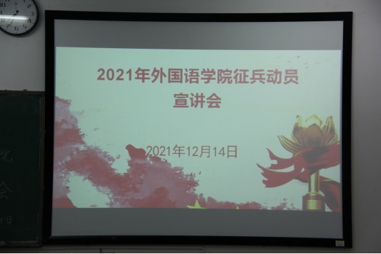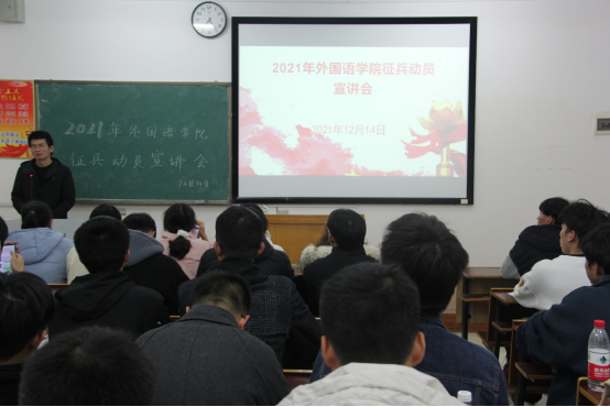 12月14日晚,为了更加全面宣传大学生应征入伍的相关条件和政策,我院于外北204召开了英国365集团征兵动员宣讲会。本次宣讲会由外国语学院邱国周老师主持,英国365集团全体男生到场聆听。