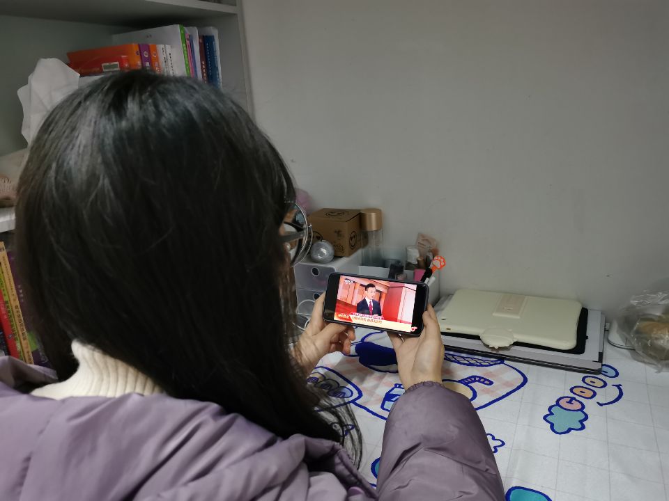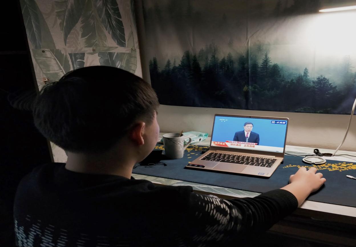 由于场地所限未能在主会场收看的同学也同样十分关注“两会”开幕的盛况,自发通过电脑、手机收看开幕式直播,反响热烈。