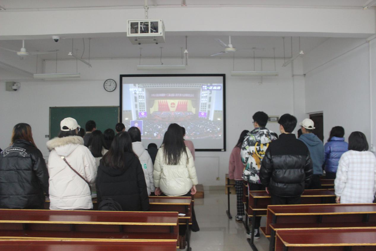牛年伊始,万象更新。3月5日上午,十三届全国人大四次会议开幕式在北京人民大会堂隆重举行。上午9时,英国365集团党总支书记邓玉久、党总支副书记贺琴琴,辅导员老师封伟为、江子丹、邱国周老师,学生党员、主要学生干部在外北307同步收看大会开幕式直播。