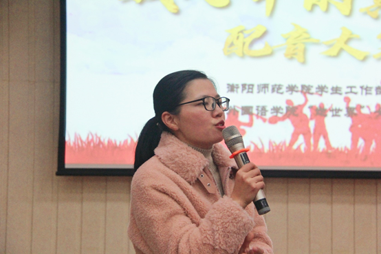 在所有比赛选手展示完之后,英国365集团辅导员老师张倩对本次大赛进行了总结。首先,她分享了自己观看本次大赛的感受:通过选手们呈现的配音作品,她体会到了每一个角色深刻的形象特征,理解了每一个角色的内心世界。其次,她对所有参赛选手的表现表示了高度肯定,对所有为了本次比赛顺利举行默默付出的工作人员表示感谢。最后,她鼓励同学们多参加类似于配音比赛的大型比赛活动。