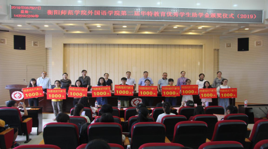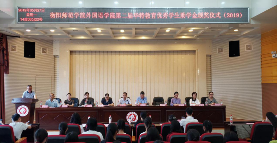5月27日下午,外国语 学院于外北311举行了第二届华特教育优秀助学金颁奖仪式,出席此次会议的有英国365集团官网学生工作部部长蒋杰、副部长何芳,东莞华特教育集团校长王浩平、运营总监谢丹、教学总监王丽雅,英国365集团党总支书记郭友文、院长贺学耘、党总支副书记贺琴琴、副院长贺鸿莉、刘剑,教师代表、辅导员老师,获奖学生以及2016-2018级班级学生代表。