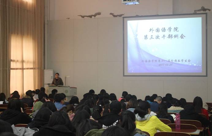 紧接着,辅导员江子丹也对近期相关工作进行说明。可分为以下几点:一,学校正在进行学生手册的修订,希望同学们要遵守学校的规章制度。二,最近,15.14级学生需填写之后会放进档案的学年鉴定表。三,专四考试临近,希望15级学生认真备考,以取得好成绩。最后,江老师肯定了学校的英语吧活动,并提出了自己的一些意见。同样邱老师也指出最近部分同学学习态度不太端正,学习目标也不太明确,希望同学们能改变这种态度,规范自己的学习生活,端正学习态度。