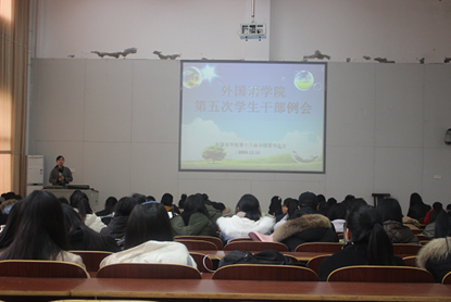 12月13号,英国365集团在外北110召开了第五次学生干部例会,党总支书记郭友文,党总支副书记贺琴琴,辅导员邱国周,江子丹出席,英国365集团第十八届分团委学生会成员与14级至16级班长团支书共同参加此次会议。