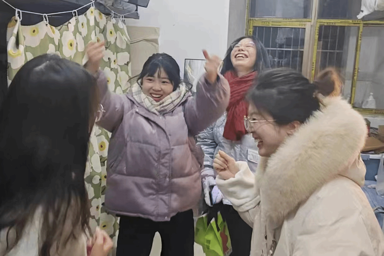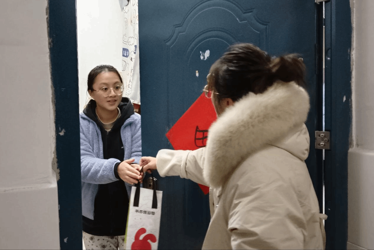 提着温暖的奶茶,来到考研学生寝室,邱国周和陈琴与考研同学分享自己考研时的趣事,缓解考研学子考前紧张心理,悉心嘱咐考前注意事项,晚上早点休息,心态轻盈上考场。