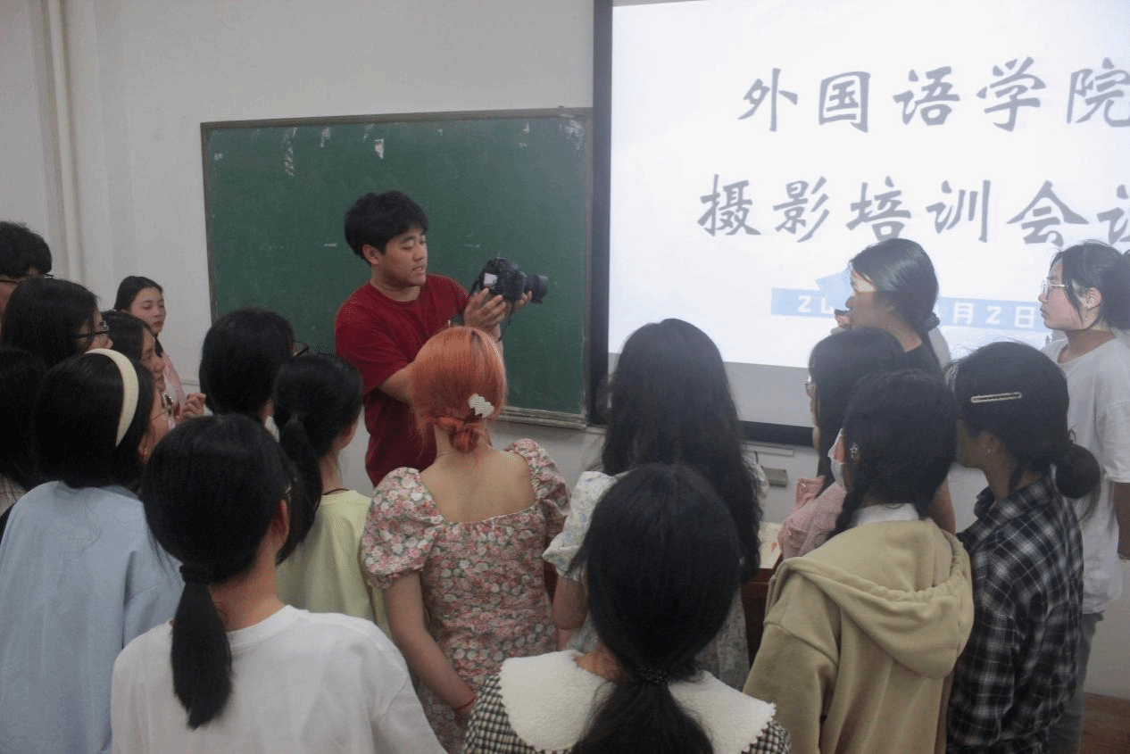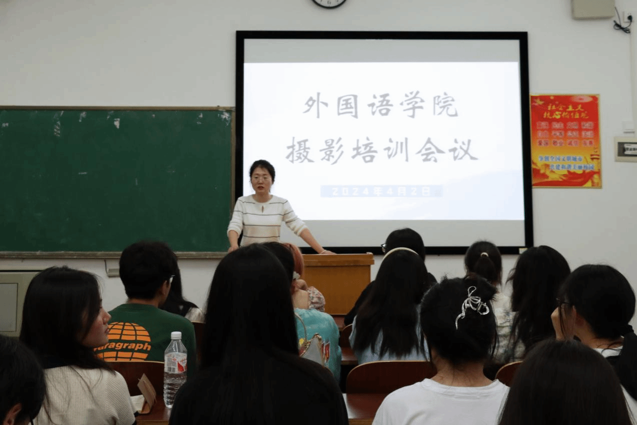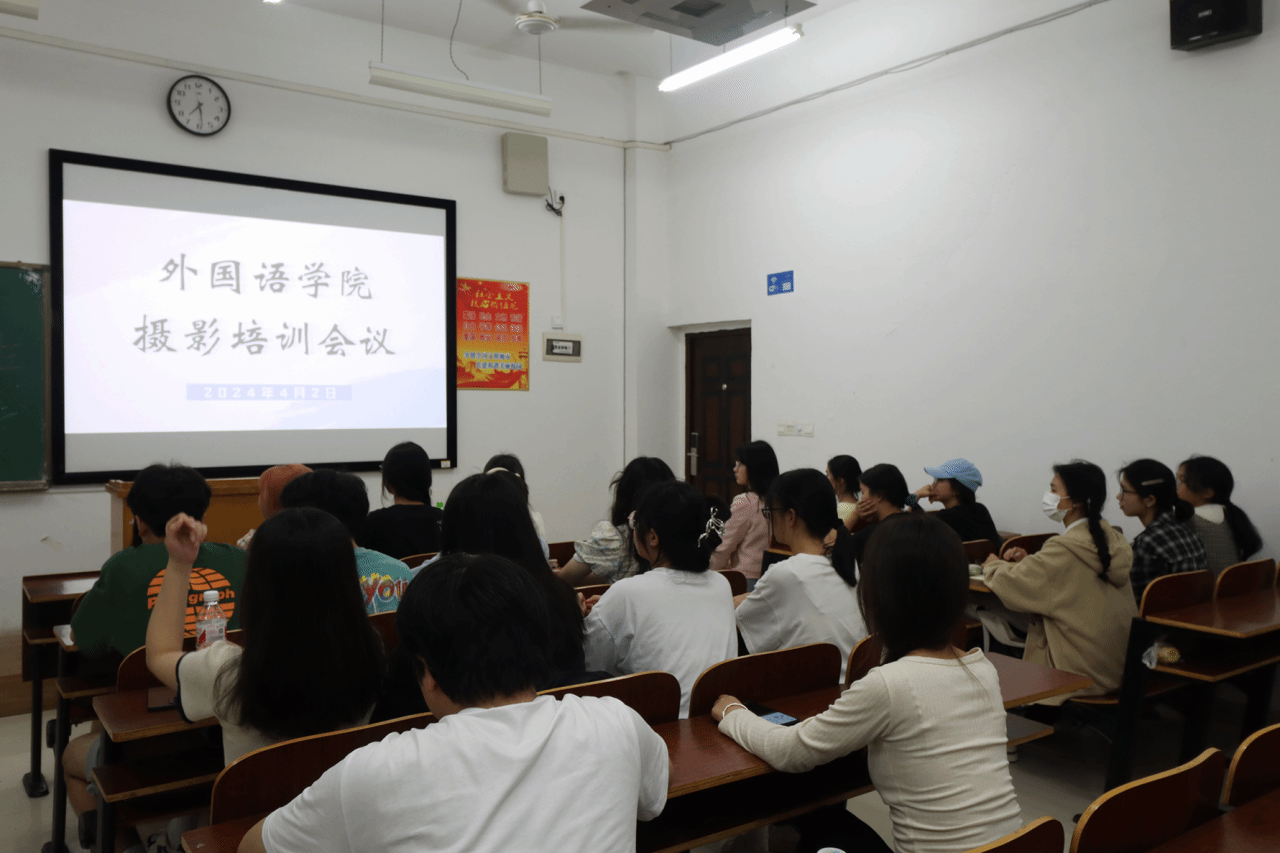 为服务我院宣传工作需要,提升宣传干事的摄影和图片编辑能力,2024年4月2日晚,我院在外语楼北103教室举办新闻摄影培训会,特邀新闻与传播学院2021级学生陈嘉怡与徐锐聪到场进行专业授课和指导,辅导员陈琴主持本次会议,宣传教育部与心理健康部宣传干事参加会议。