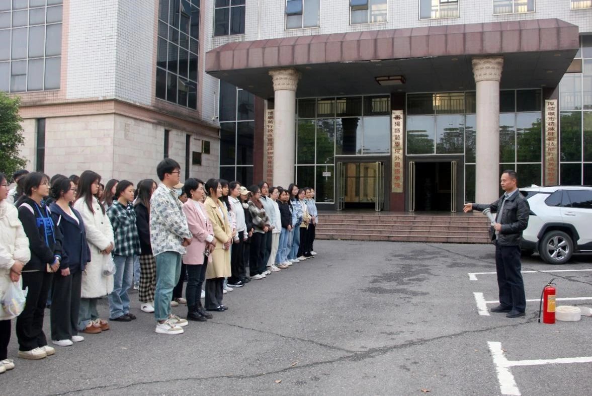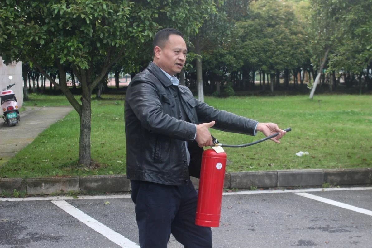 大家疏散至安全区域后,学校保卫处工作人员王燚伟向师生们讲解了消防安全知识与消防器材的使用方法与技巧。他着重强调了火灾初期三分钟内的自救与逃生要领,并详细阐述了火灾隐患的排查与消除方法、疏散逃生的正确途径以及消防器材的使用技巧,向大家示范了灭火器的使用要点——“提、摇、拔、握、压”。同学们参与其中,亲身体验了灭火器的使用方法。