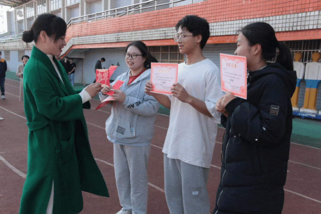 党总支书记贺琴琴、党总支副书记欧阳竹、学工办主任邱国周、辅导员老师陈琴、刘志伟分别为获奖班级进行颁奖,对他们团结一心、永不言弃的精神表示鼓励与赞赏。