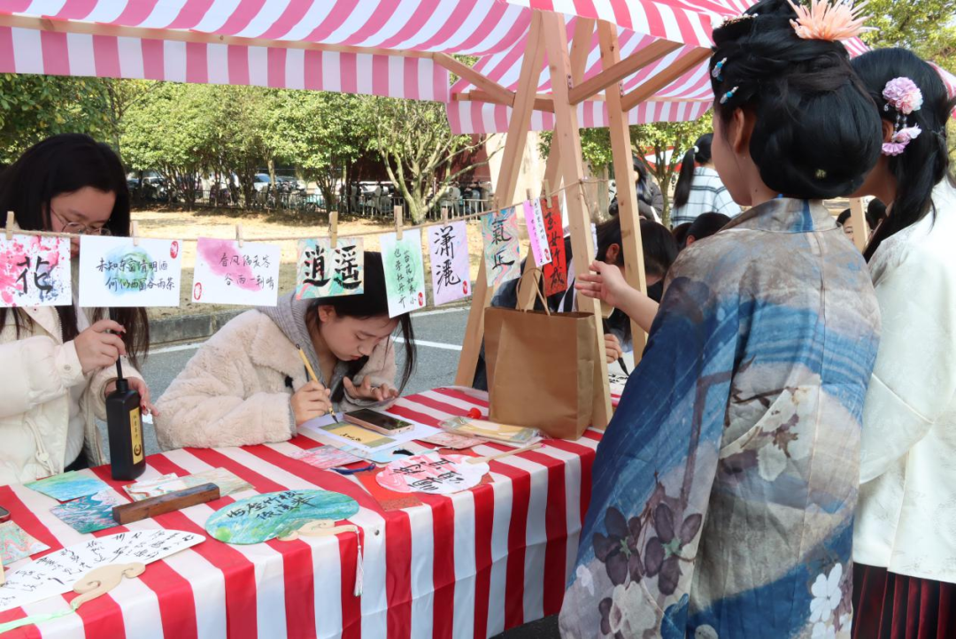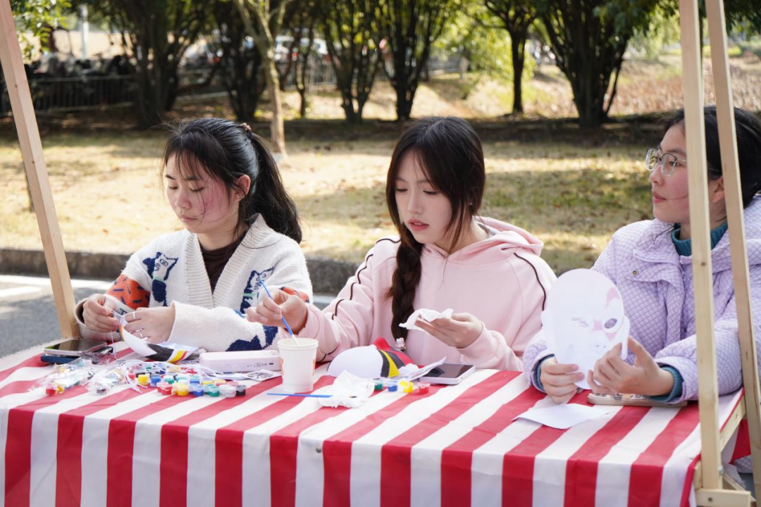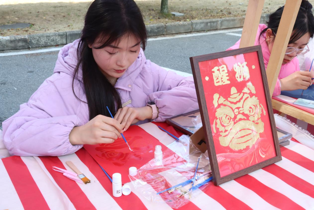 除了剪纸艺术,活动现场还设有多个非遗互动区,展示了丰富多彩的非遗文化,如金箔画、螺钿手工、水拓丝巾等。在京剧脸谱互动区,同学们手持画笔,在空白脸谱上勾勒出独特的图案。与此同时,讲解员向同学们介绍:“每一种色彩、每一道纹样都承载着特定的文化寓意,如红色代表忠勇、黑色象征刚直……”同学们一边动手绘制脸谱,一边认真聆听,脸上写满了对传统文化的敬畏与好奇。“通过参与这些非遗手工艺品的制作,我更加明白了传承非遗文化的重要性。”一位参与活动的同学表示,“作为年轻一代,我们要用创新的思维和方式,让非遗文化在现代社会中焕发出新的活力。”在此次活动中,同学们不仅通过动手实操亲身体验了传统技艺的精妙,更通过聆听非遗背后的故事,深入理解了其文化内涵与历史意义。