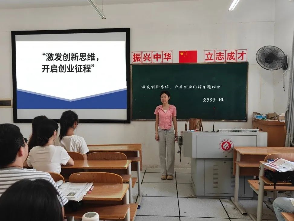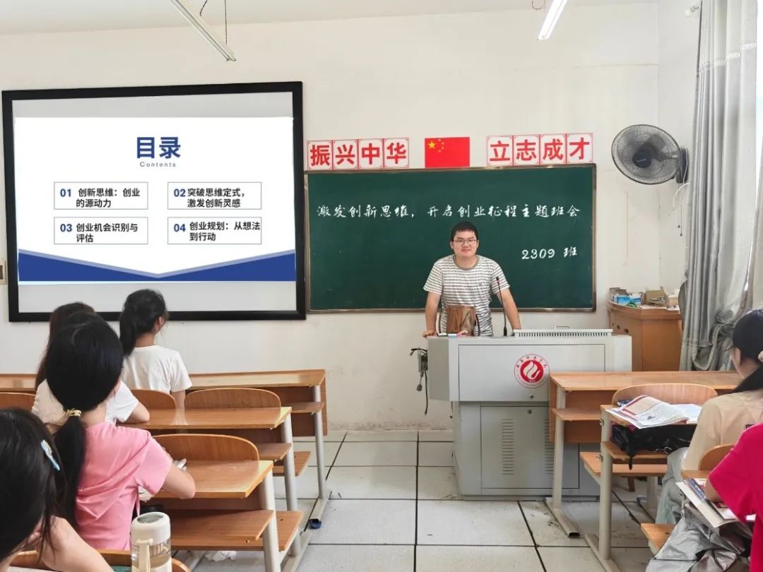本次主题班会活动形式多样、内容丰富。活动现场,有的班级通过观看创新创业成功案例视频,学习优秀企业家的创业历程,汲取宝贵经验;有的班级邀请高年级学长学姐亲临现场,分享他们在创新创业大赛中的实战经历,为同学们提供了切实可行的参赛指导;还有的班级通过小组讨论,紧密结合自身专业特色,提出了众多新颖独特、富有创意的项目构思。