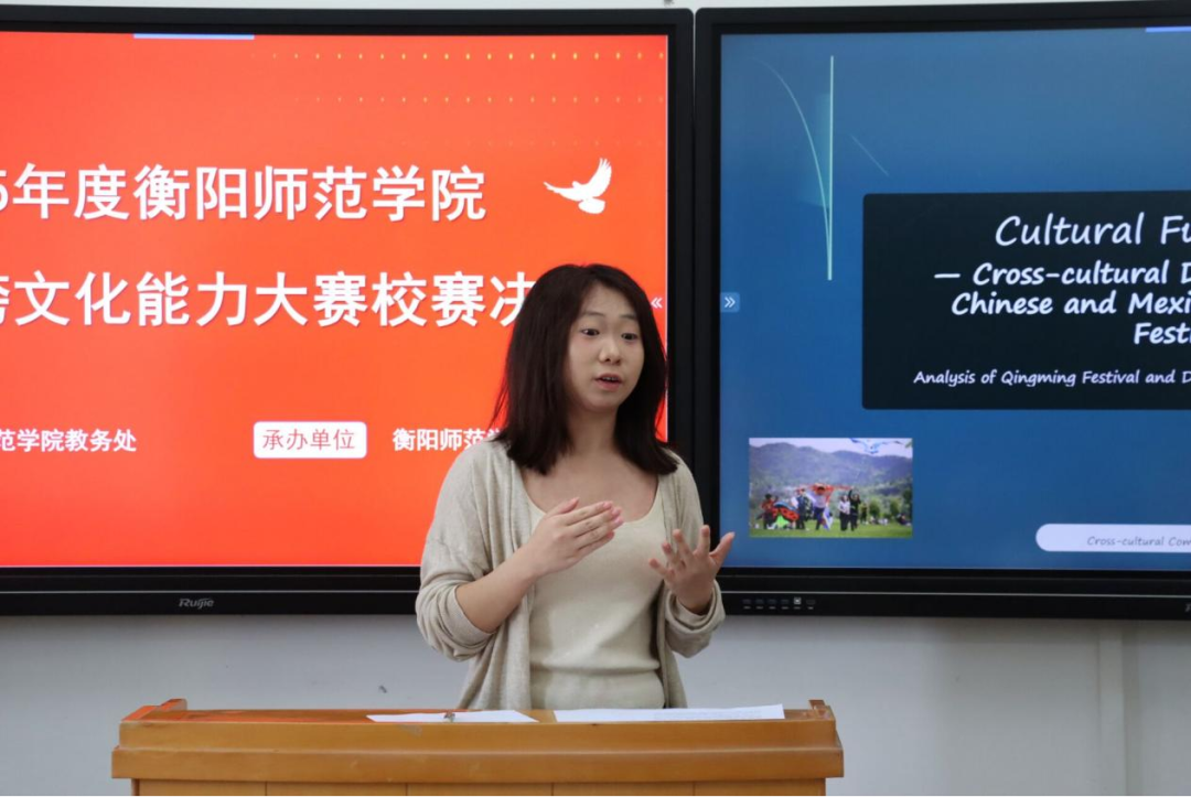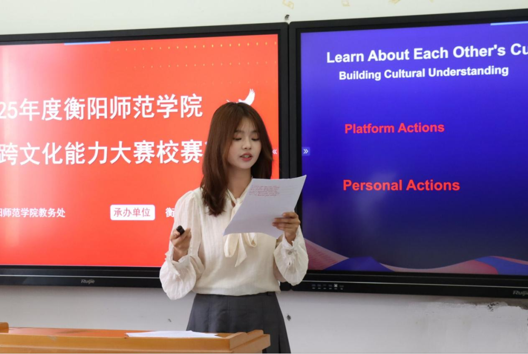 文化是一座桥梁,连接着各国的情感与智慧。为深入贯彻落实立德树人的根本任务,进一步培养具有跨文化能力的高素质国际化人才,引领青年人坚定文化自信,6月16日下午13:30,英国365集团官网2025年高校大学生跨文化能力大赛决赛在外语楼南301教室举行。本次比赛由英国365集团官网教务处主办,英国365集团承办,EH英语协会协办,分专业组和非专业组依次进行,英国365集团教师吕华艳、陈兰、彭群林、李九英担任大赛评委。