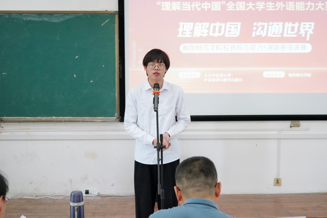 即兴演讲环节更是考验选手真功夫。选手现场抽取话题,5分钟准备后,需在两分钟(正负15秒)内完成演讲。面对多样主题,他们快速构思、灵活应变,或探讨文化传承与创新,或剖析青年在全球化浪潮中的责任,用清晰逻辑与生动表达展现临场智慧。回答评委提问时,针对定题演讲内容,选手们冷静思考、精准回应,展现出即兴口语的逻辑性与语言功底,评委专业点评也为选手成长指明方向。