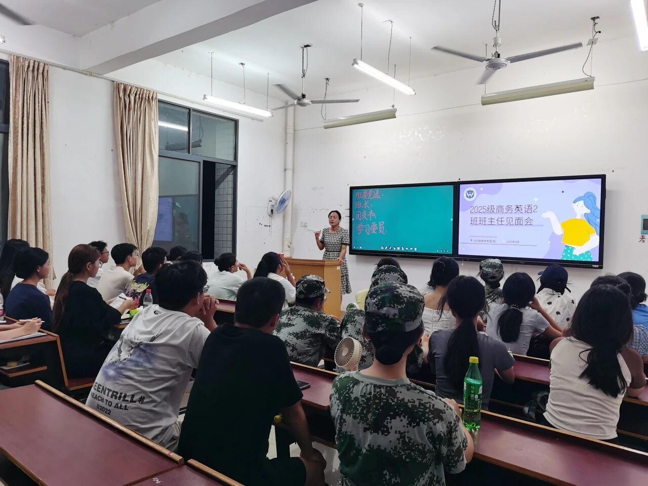 见面会现场,各班班主任以“专业”为起点,用详实且生动的讲解为新生拨开认知迷雾。他们从自身深耕多年的专业背景切入,不仅细致梳理了学科从基础到进阶的发展脉络,更结合新生课程表拆解了核心课程、实践模块的设置逻辑——小到大一需夯实的语言基础课,大到高年级可参与的跨境实习项目,都被一一清晰呈现,让新生对未来学业规划有了更具体的认知。
