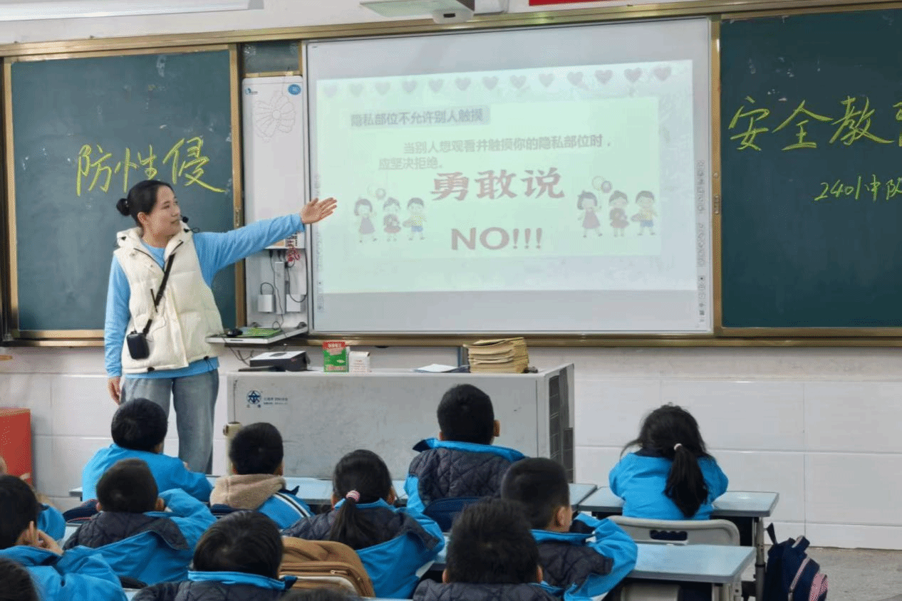“有人让你看奇怪视频怎么办?”“告诉爸爸妈妈!”“马上跑开!”生活场景模拟环节,孩子们的回答充满童真却精准。“小老师”趁机补充关键提醒:“近七成伤害可能来自认识的人,比如邻居、亲戚,大家更要提高警惕。”随后总结的3条“安全守则”——“换衣服要关门”“不单独去偏僻处”“陌生人零食不能要”,更是在孩子们的跟读中,变成刻进心里的行动指南。