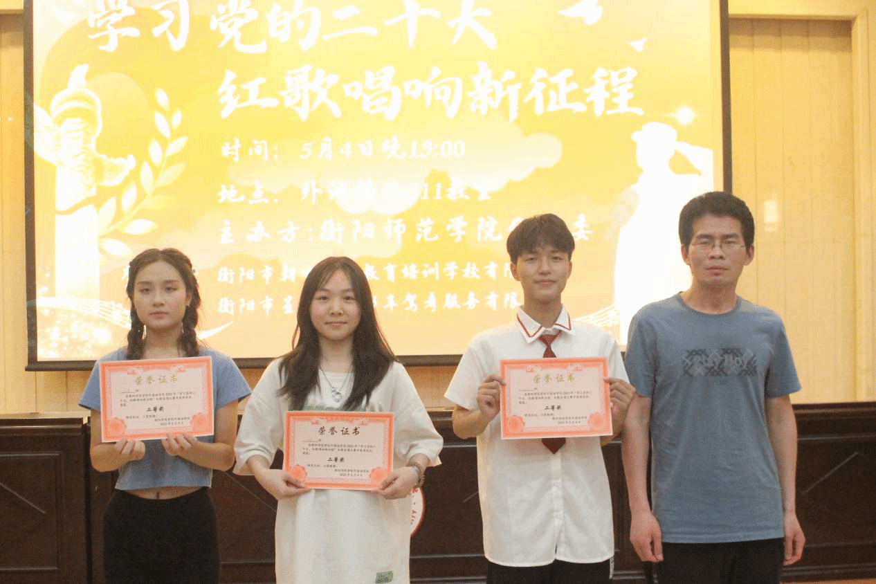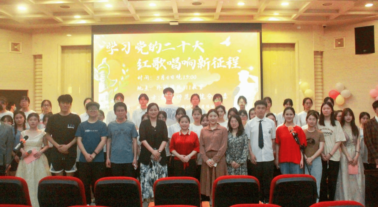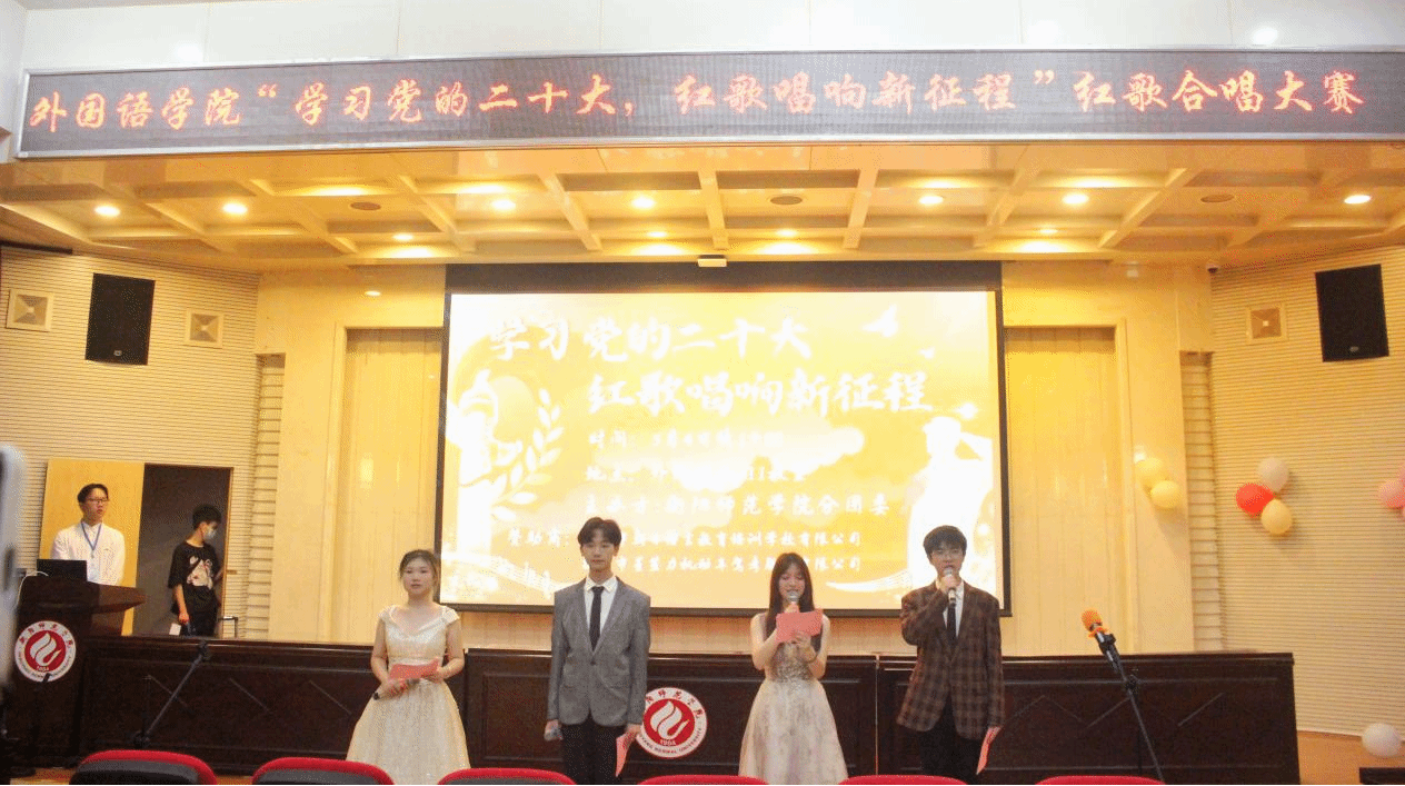 时光荏苒,岁月如歌,百年征程谱新篇;红歌传承,青春涌流,唱响时代最强音。时逢五四青年节,为激发同学们的爱党爱国热情,弘扬革命传统,培育民族精神,展示青年风采,凝聚奋进力量,英国365集团分团委于5月4日晚上19点,在外语楼北311隆重举行“学习党的二十大,红歌唱响新征程”红歌合唱大赛。英国365集团党总支书记贺琴琴、副院长何文娟、学工办主任邱国周、辅导员龚晨阳、刘志伟、陈琴出席本次活动。