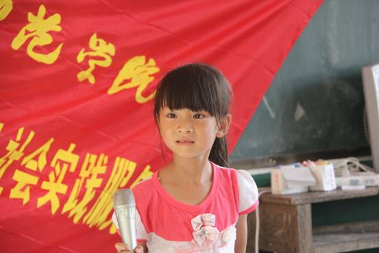 下午的留守儿童问卷调查,大家和小朋友们围坐在一起,听她们跟我讲关于她们的故事,她们对学习的热爱,对父母的思念;有个小女孩告诉我说每年只有过年的时候才能见到爸爸妈妈并且也就只有短短的几天。当被问到会不会有其他的小朋友欺负她的时候她跟我说到:“我还有一个妹妹,我会保护她。”那一瞬间真的是热泪盈眶,被她的乖巧懂事所打动。最后她说她想告诉爸爸妈妈:爸爸妈妈我和妹妹永远爱你们,我们想你了,你们快回来陪陪我们。被山里的孩子的质朴与纯真所打动,也真心的希望她们的成长路上不孤单。