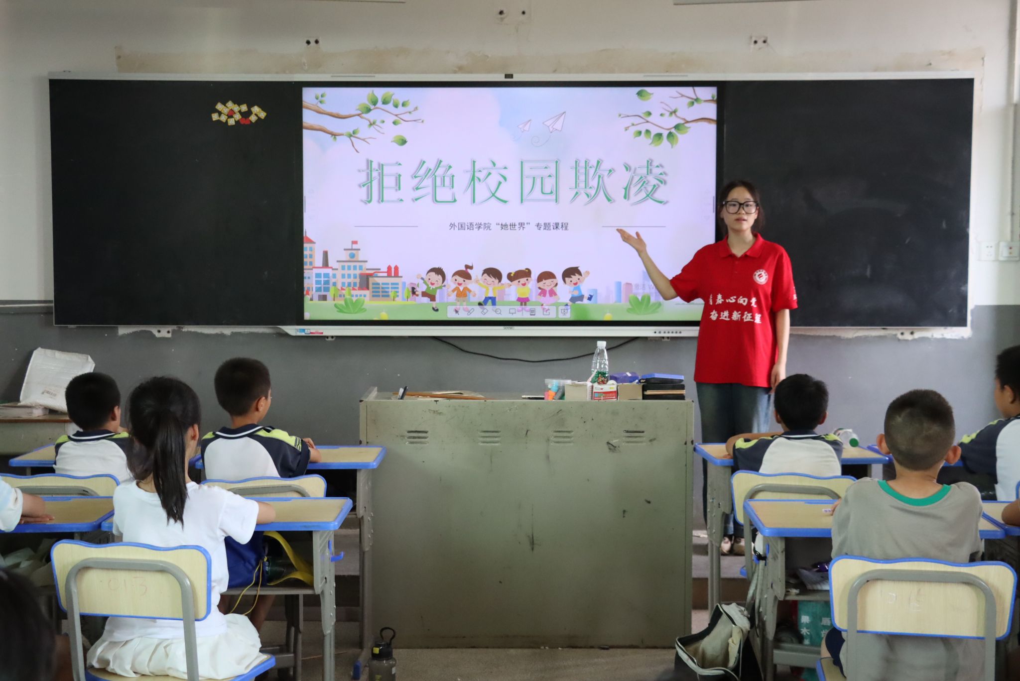 此外,依托英国365集团“她世界”女生教育工作室,本次社会实践活动将“自我引导、自我教育、自我管理”的指导方针和自尊、自立、自信、自强四自的理念带到了衡阳市珠晖区东阳渡镇新坪村明德小学。