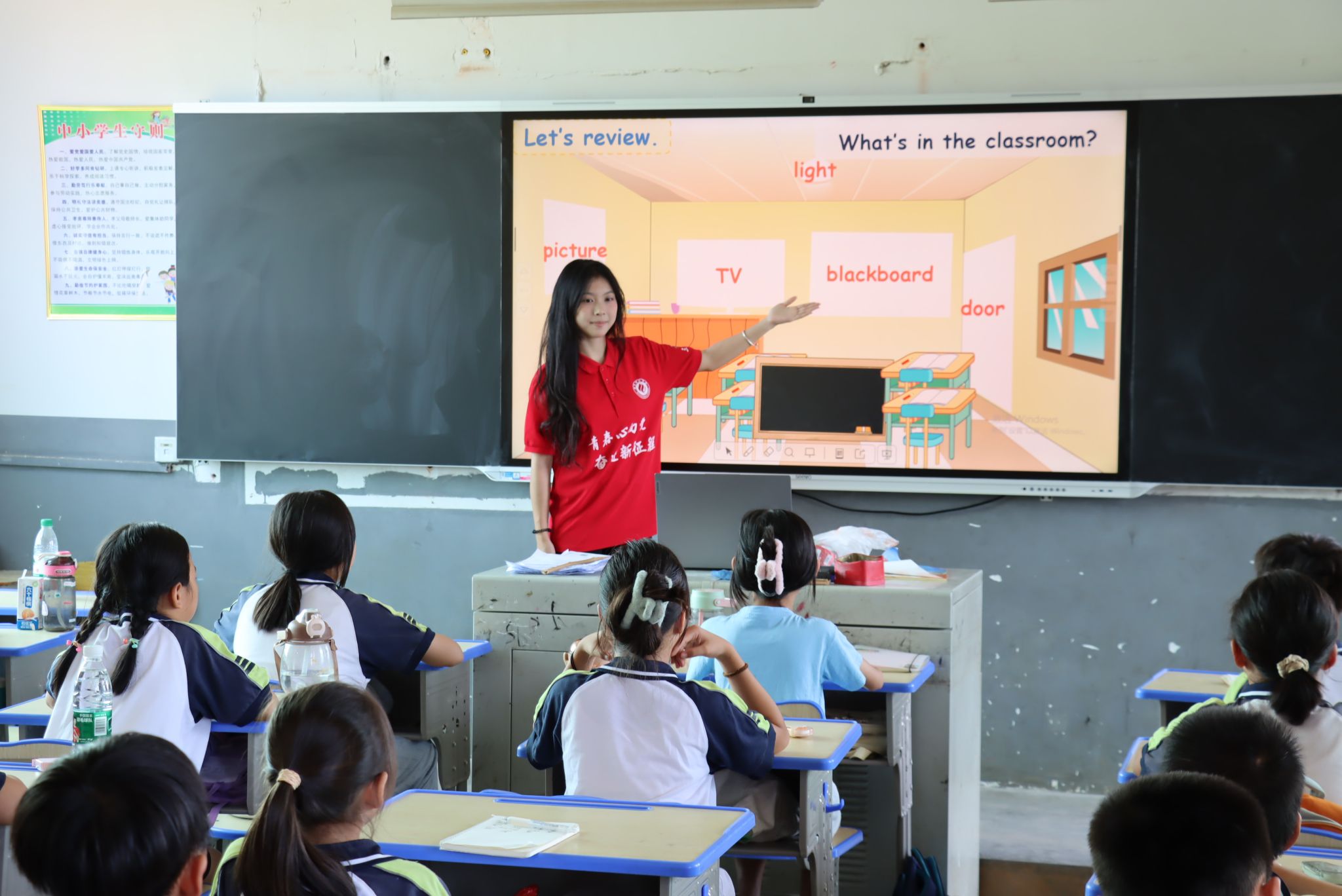 英语素养课程的设置旨在向孩子们传授英语知识,但更为重要的是寓教于乐,激发孩子们对英语乃至全科目的兴趣,培养孩子们的良好学习习惯与学习自主性。“小老师”们除了传道授业外,还为孩子们策划了许多小游戏,将学习内容穿插其中,孩子们乐在其中。随着支教活动的逐步深入,孩子们自第一次上课的陌生与不适,到提前坐在教室早读,课堂上积极举手发言,孩子们当下的每一点进步,都是在为未来的发展增添可能性。