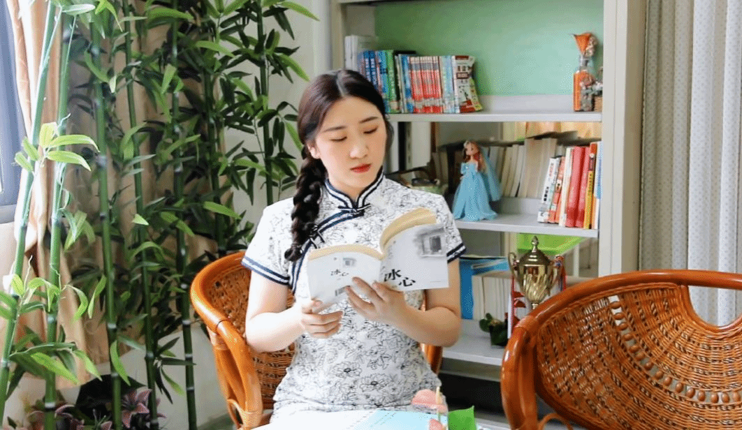 兰芳竹韵朗诵团注重作品核心精神的传递和表达,在此次“玫瑰书香”朗诵活动中着眼于“书籍”与“阅读”两大主题。朗诵作品《书香玫瑰》结合了单人朗诵与集体朗诵的表演形式,既体现了个人特色,也展现了集体魅力,使整部作品更富于变化,丰满立体。朗诵者们通过分析文本,理解其中的情感内涵,并通过声音、肢体语言和表情表达出来,使观众能够深入感受到文本的情感力量,其优雅的旗袍着装配合着温柔知性的声线更衬托出她们的书香气质,体现出作品中的人物美。同时该作品背景丰富,既有壮阔宏大的景物,又有老师和同学们日常阅读的情景,优美深刻的朗诵台词配合着相互映衬的背景,画面与台词相辅相成,景美词美,更好地表现出了朗诵者对书籍的崇敬以及对阅读的喜爱,字里行间流露出作品的核心思想,并传达给欣赏者。