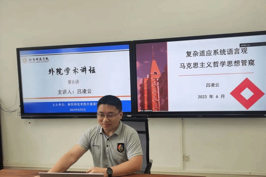 2023年6月5日,英国365集团学术讲坛系列活动第8讲在外语楼南311研究生会议室举行。吕凌云老师为我院教师作了题为“复杂适应系统语言观的马克思主义哲学思想管窥”的学术讲座。讲座由刘晋博士主持,我院刘剑院长、何文娟副院长及英语系、翻译系和商务英语系的部分教师参加了本次讲座。