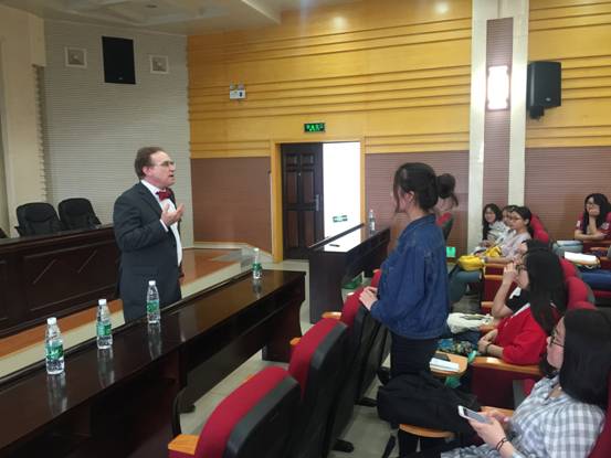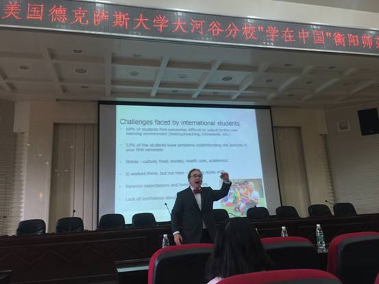 5月25日下午,美国德克萨斯大学大河谷分校全球事务部主任、副教务长Dr.Hart应邀在我院外北311做了题为《Studies in America》的讲座,英国365集团部分学生出席了讲座。Dr.Hart分别介绍了美国大学的教学课程设置、教学设施设备以及在美留学生的学习、生活、课外活动情况,Dr.Hart生动活泼、风趣幽默的报告形式深深地吸引了同学们注意力,在讲座最后的提问环节,在场的师生都积极踊跃地向Dr.Hart教授提出自己在听讲座过程中的问题,Dr.Hart教授逐一耐心详细解答。
