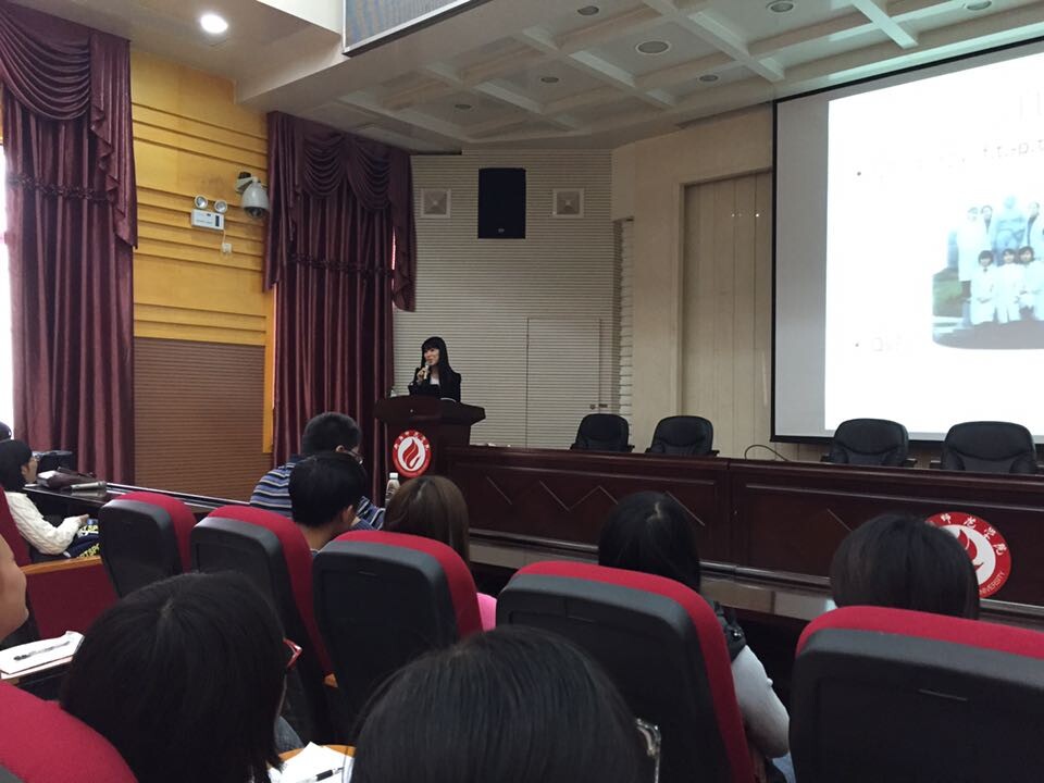 萧女士从事同声传译工作,实战经验十分丰富,她虽然从医出身,但现在已经是翻译界的奇才,她告诉学生:量的积累才会有质的突破,要多看、多听、多说。另外她还传授了一些口译中常用的速记方法和翻译技巧。她流利的英语让在场师生叹服。
