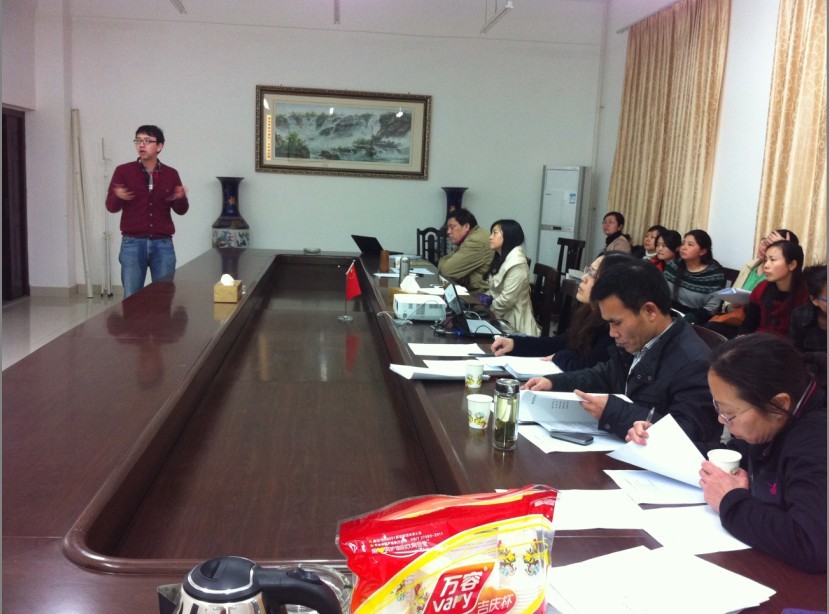 2013年4月10日,英国365集团官网外语系周维等6名申报湖南省教育厅科学研究项目的老师和马超等11名申报英国365集团官网教学改革研究项目的老师在外语楼213会议室进行课题答辩。外语系罗忠民教授、贺学耘教授、胡玉辉教授、徐江清教授和谭晓丽博士担任评委。