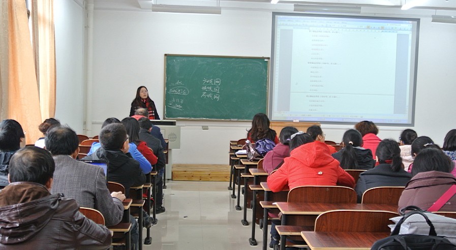 贺主任的讲座题为《本科翻译专业课程设置现状及体系建构》,讲座中贺主任先回顾了系部主要领导到全国开设本科翻译专业的名校北二外、复旦、上外、华师等高校考察调研的情况,丰富的图片详尽的数据让大家对开设本科翻译专业的院校特色和影响有了较好的了解。接着贺主任重点讲了我系本科翻译专业的人才培养模式与课程设置体系,对如何调整完善英语专业本科翻译课程设置模式进行了具体的分析与探讨。