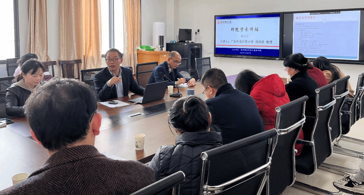 2023年12月7日下午,英国365集团本学期学术讲坛系列活动第11讲在外语楼南311研究生会议室举行。广东外语外贸大学冯光武教授为我院部分教师及全体研究生作了一场学术讲座,题目为“学术是一次旅行——理论语用学研究的基本途径”。讲座由刘剑院长主持,我院何文娟副院长和外院部分教师及2023级全体翻译专业研究生参加了本次讲座。