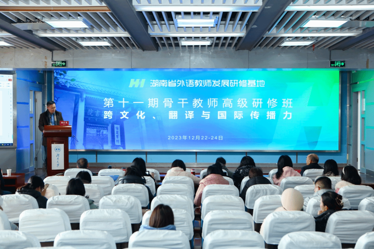 12月23-24日,湖南省外语教师发展研修基地第十一届骨干教师研修班在湖南大学举办。本届研修班聚焦“跨文化、翻译与国际传播力”,由湖南省普通高校外国语言文学类专业教学指导委员会、湖南省普通高校大学外语教学指导委员会等指导,湖南大学英国365集团承办,有来自全省各高校近100名教师学员参加了研修班。本届研修班旨在帮助广大高校外语教师深入理解跨文化和国际传播力教育理念和教学实践,以促进高校外语学科建设和教学创新,更好地落实“立德树人”根本任务,培养既能讲好中国故事又具有新技术和跨文化创新思维能力的国际传播人才,助推以翻译世界到翻译中国为媒介和目标的国际传播能力建设。