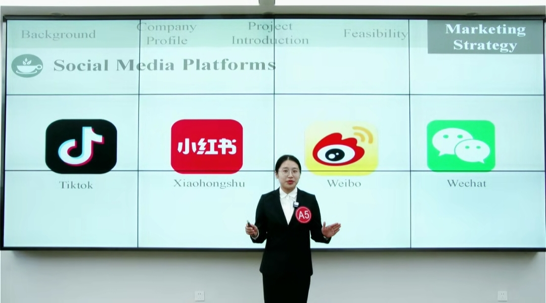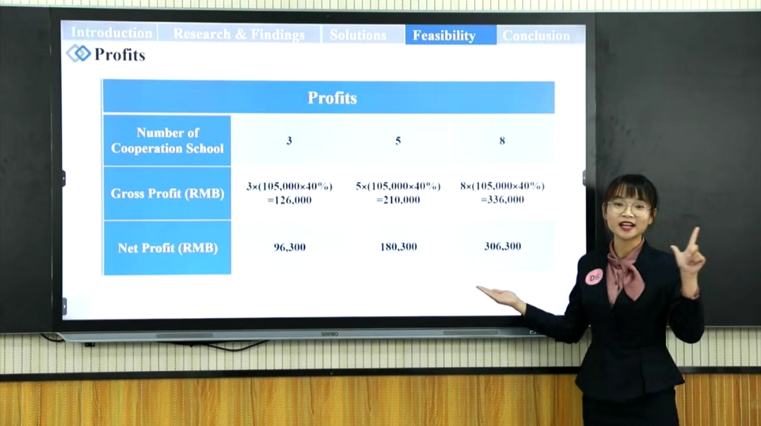 在研究成果团队展示阶段,来自六所高校的比赛选手们从容冷静,表现出较高的专业素养。他们通过制作精美的PPT向评委老师们介绍自己在对企业进行实地考察之后收集整合得来的图片、数据、样本等相关资料,同时,经过深入企业调查研究、学习和总结企业成功经营理念和管理模式,选手们提出了具有适用性和有效性的多个可行方案,深刻体现了本次比赛“理论与实践相结合”以及“商为我专,英系我才”的特点。