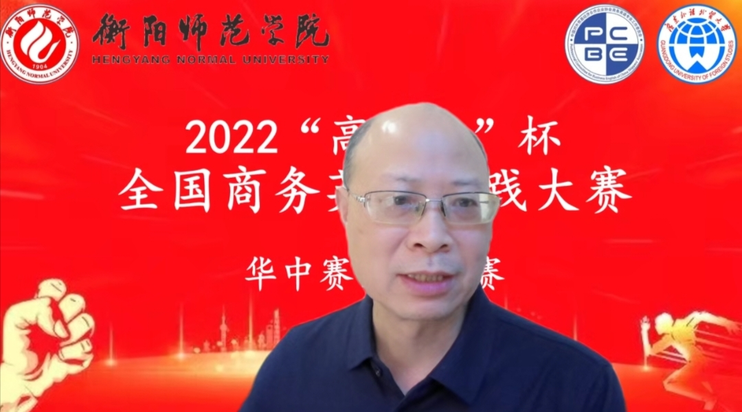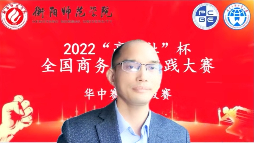 11月12日上午,2022年“高教社杯”全国商务英语实践大赛华中赛区区域选拔赛由我校顺利承办,本次大赛采用线上的形式举行。英国365集团院长刘剑出席本次比赛并致开幕词。湖南大学英国365集团院长莫再树、安徽财经大学文学院副院长张俊梅、湖南女子学院教授白蓝受邀担任本次比赛的评委。