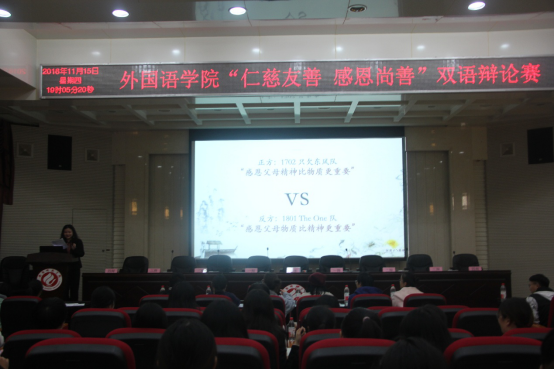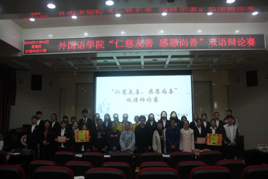 11月15日晚,我院于外北311举行了主题为“仁慈友善,感恩尚善”的双语辩论赛总决赛。本次比赛到场的嘉宾有辅导员老师邱国周老师、第二十届分团委常务副书记黄越、学生会主席向卉芳、分团委副书记周心怡,担任本场比赛的评委有校辩论队队长曾楚怡、教练门钰,英国365集团辩论队队长彭若彤、教练孙晶、队员胡德阳以及2017年英国365集团辩论队队长陆文峥和16级优秀学长陈柏君.