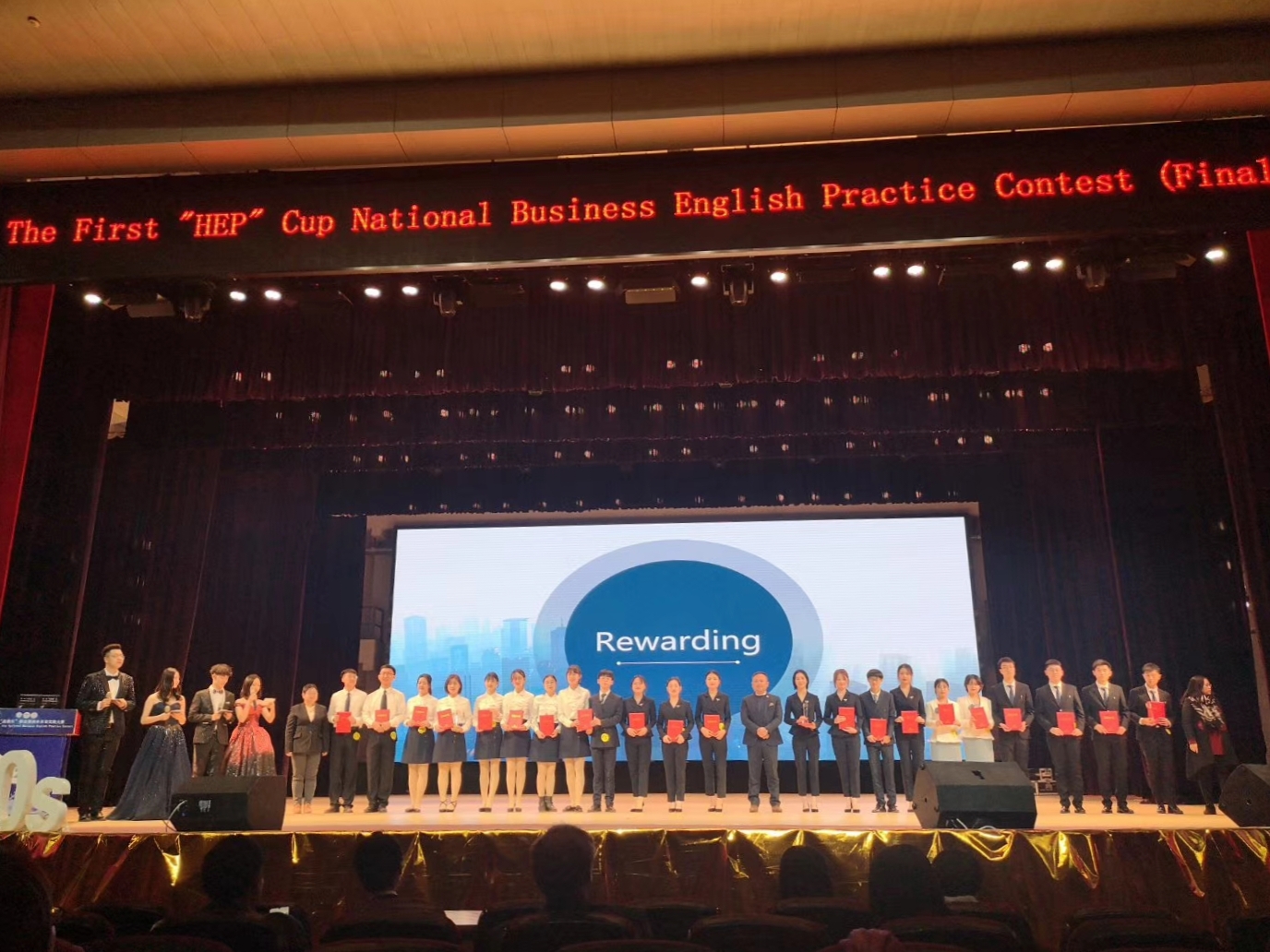12月7日,由中国国际贸易协会国际商务英语研究会、广东外语外贸大学、高等教育出版社主办,广东外语外贸大学国际商务英语学院承办的第一届“高教社杯”全国商务英语实践大赛在云山会堂举行。经过激烈的角逐,我院Kueen小队在上午场半决赛中击败其它九所高校,成功进入全国总决赛并荣获二等奖佳绩。