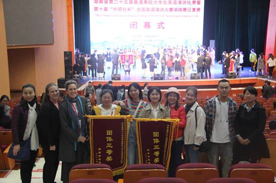 从5月到10月,在领导的关怀下,经过刘也玲老师为首的英语演讲培训团队(言捷智、贺利燕、黄梅、李娟、邵莉、周维、罗亚君、刘聪和多名外教)悉心指导,经过层层选拔,我校共派出3名选手参赛,经过激烈角逐,在决赛中获得不俗的成绩:英国365集团参赛选手周斌会荣获英语专业组三等奖;物电学院贺元领荣获非英语专业组二等奖;城旅学院何昱澄荣获非英语专业组三等奖。