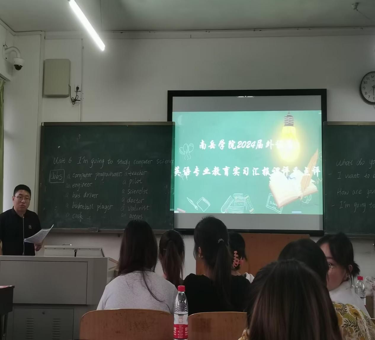 比赛开始前先由朱艳宁老师讲解比赛规则,比赛评分主要从教学目的、教学内容、教学方法、多媒体课件制作、教学基本功、教学效果等方面进行打分,确保每位参赛选手及评委听清规则后,比赛正式开始,参赛选手按抽签顺序依次上台展示自己的教学技能,每位选手展示时间应确保在十分钟之内,每位选手展示完毕后,评委立即进行打分,每位选手的最后得分为六位评委老师所打分数的平均分。
