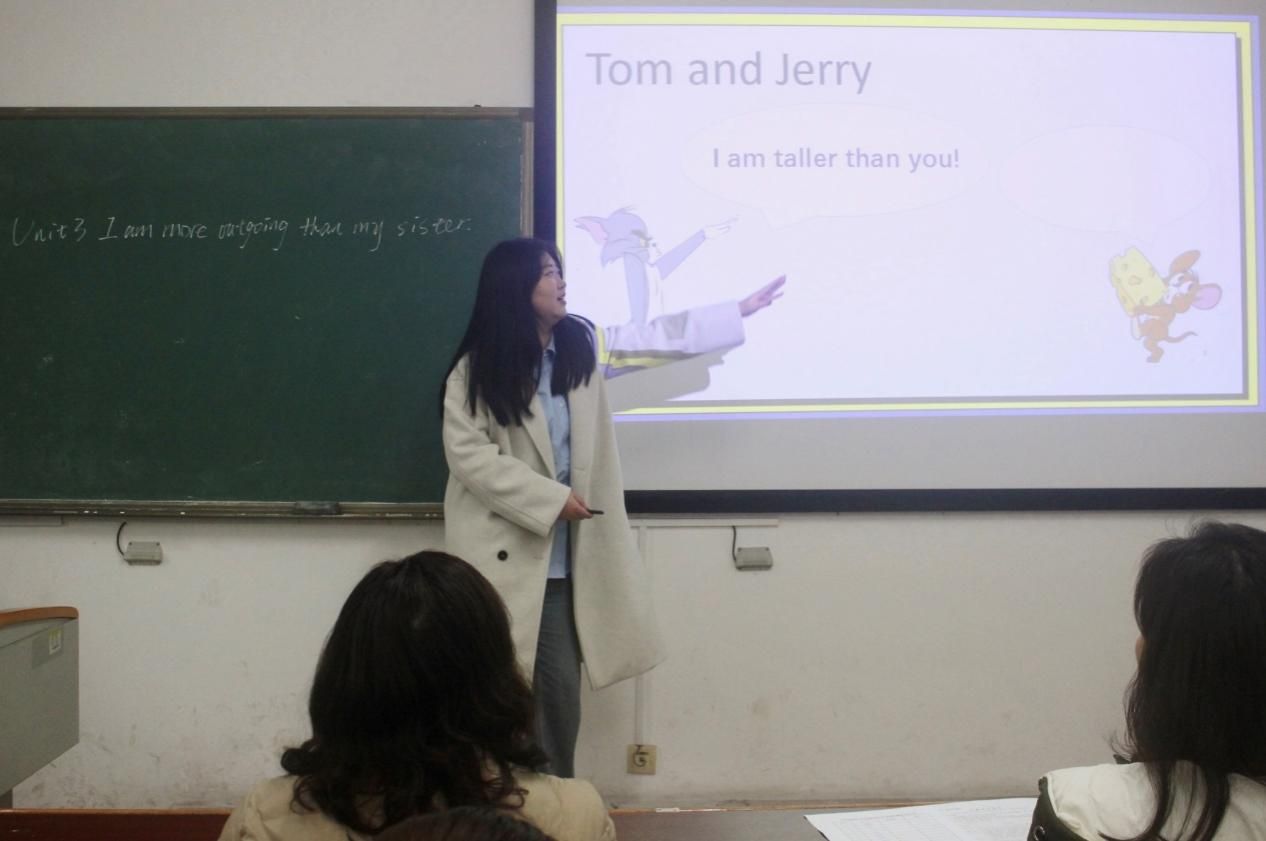 课前,各位选手认真准备,精心设计教学课件。课上,选手们从教学实际出发,通过生动有趣的情景、惟妙惟肖的表演,课堂气氛活跃、趣味洋溢。
