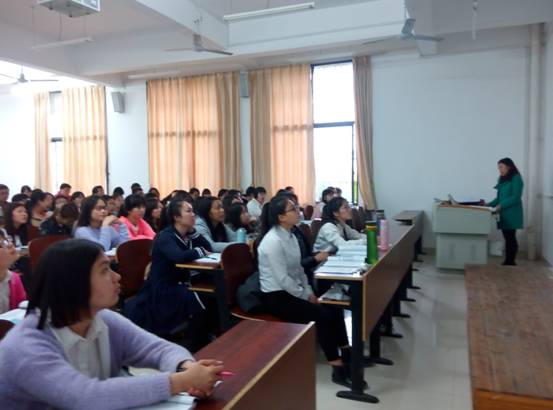 2016年4月7日下午,我院翻译教研室张敏老师在东校区外语楼北108教室为2014级历史学专业1、2班同学成功举行了《大学英语IV》的公开课。张老师先通过让学生做presentation的方式让他们把前一节课的内容进行了总结和扩展,然后通过图片展示和看视频的方式提出问题,让同学们各抒己见,引出本堂课的主题The Welfare System。校级督导罗忠民教授、胡玉辉教授,学校教务处教研科邹利民老师及翻译、商务教研室的部分老师旁听了此次公开课。课后,两位校级督导及部分老师对张老师的课给予高度评价,大家一致认为张老师教学基本功扎实、极富亲和力,英语口语流利,上课老练自然,整堂课准备充分、资料详实,课堂互动性强。同时,大家也对张老师的课提出了一些宝贵中肯的建议,比如针对教学对象为基础不一的非英语专业学生,课堂英语语速不宜过快且汉语需要占一定比重;课前导入不能太长等。张老师衷心感谢大家的鼓励和建议并表示会潜心钻研教学,争取把课上得更好。此次公开课也进一步激发了我院教师对如何上好大学英语课的思考,必将有力推动我院大学英语课的教学和研究更上个台阶。