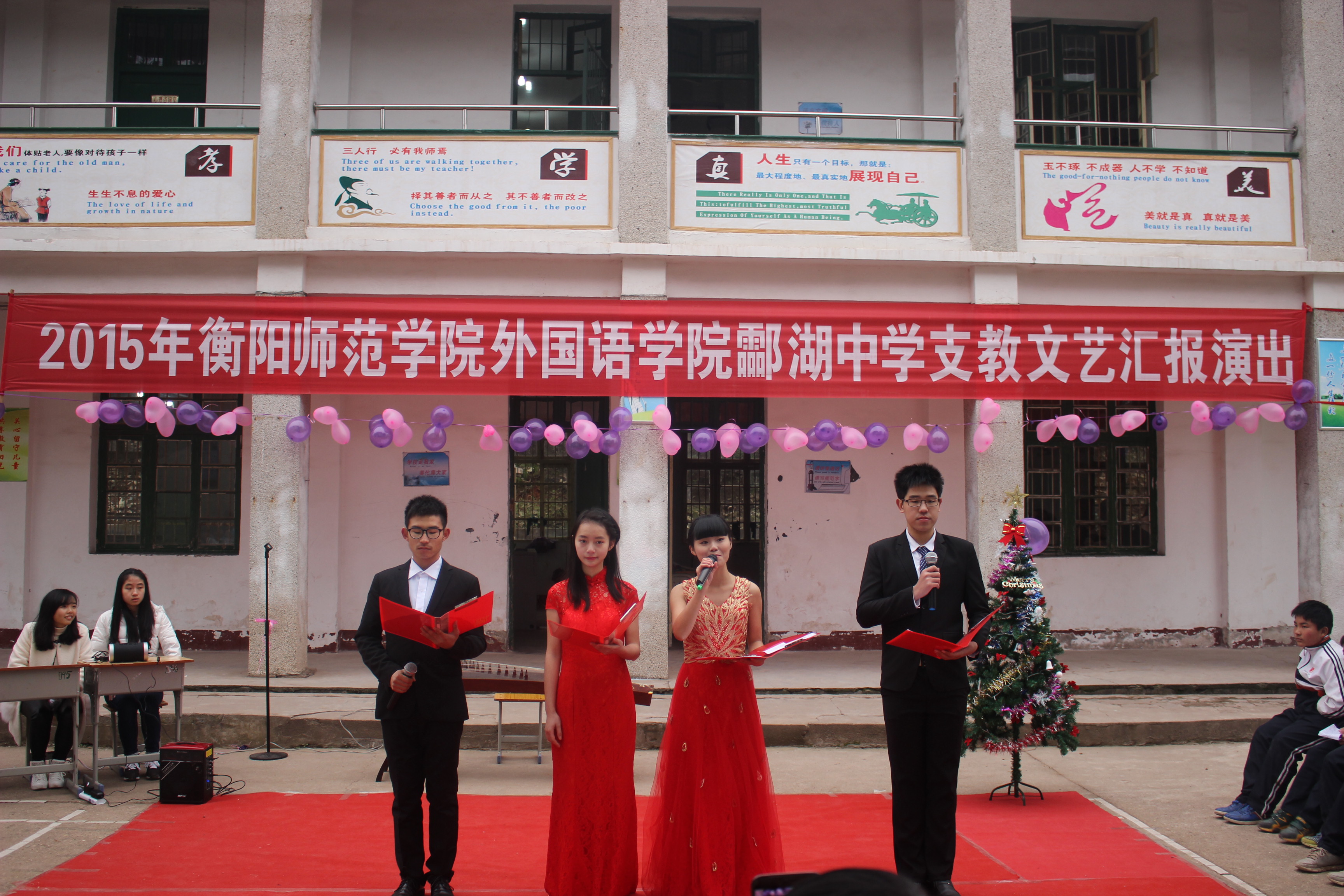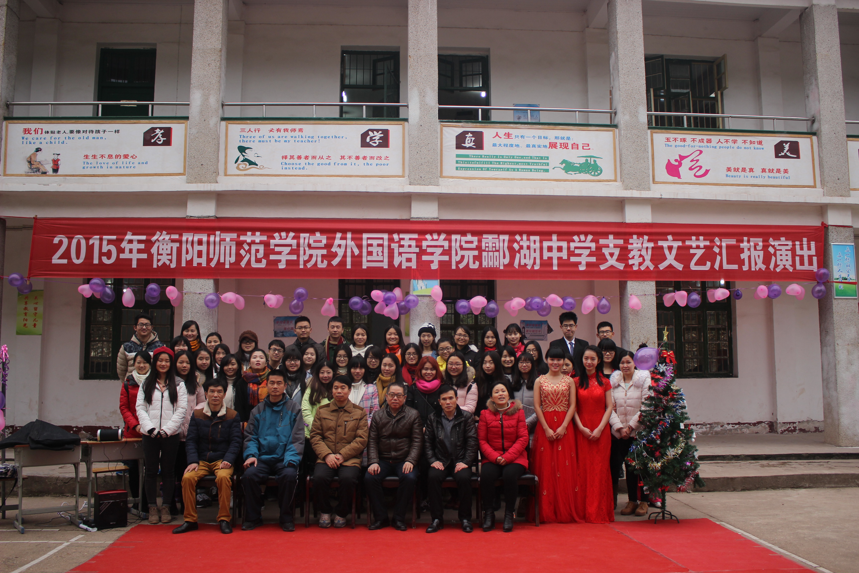 12月28日,由英国365集团主办,英国365集团师范英语党支部及英国365集团“蕙兰”艺术团承办,酃湖中学协办的支教文艺汇演在酃湖中学举行,英国365集团党总支书记郭友文、副院长徐江清、谭晓丽和酃湖中学的师生们一同观看了本次汇演。