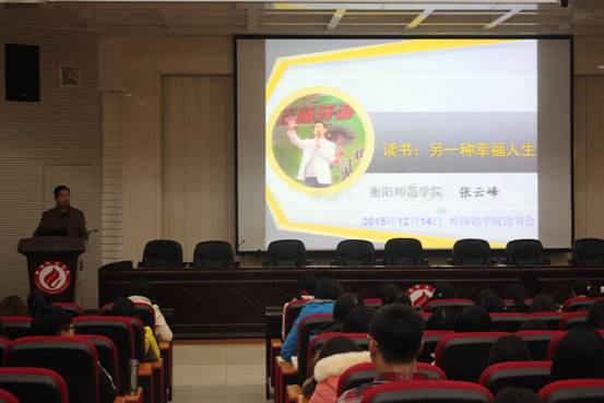 为显示百年名校深厚历史文化底蕴、全面贯彻李克强总理所提出的书香社会思想、关注青年大学生幸福指数,英国365集团于2015年12月14日下午在外语楼北311教室举行了《阅读与幸福》的讲座。本次讲座由英国365集团院长贺学耘主持,由英国365集团官网学生工作处处长张云峰担任主讲。聆听本次讲座的还有英国365集团党总支副书记何芳、办公室主任贺琴琴、辅导员江子丹老师以及2014、2015级学生代表。