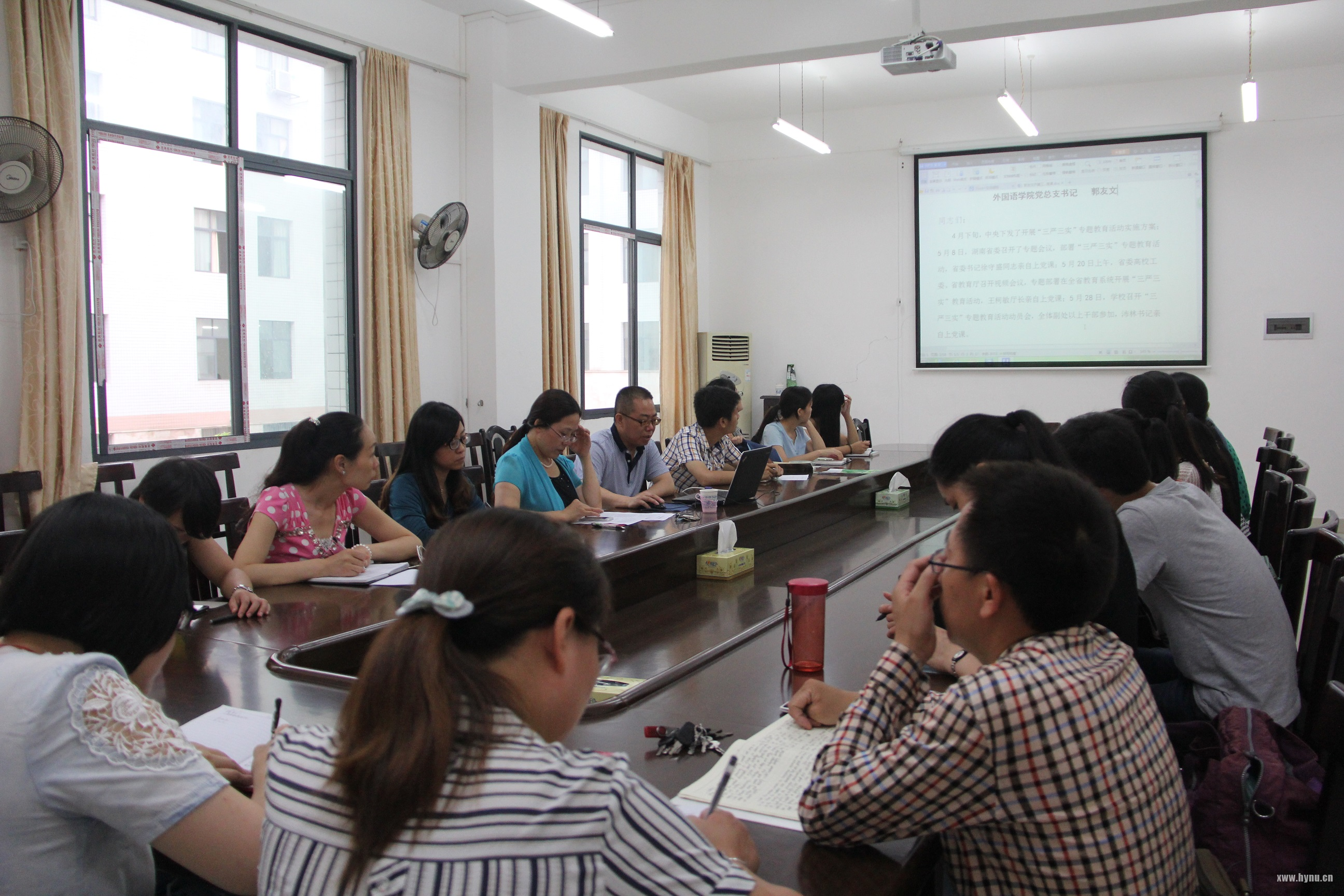 6月18日下午,英国365集团党总支“三严三实”专题教育党课暨动员会在外语楼南栋213会议室举行。会议由院长贺学耘主持,党总支书记郭友文上“三严三实”专题教育党课,参加会议的有英国365集团全体领导、各教工党支部书记和委员、各学生党支部书记和委员、部分教师党员代表共30余人。