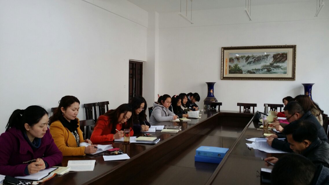 (外语系班子成员、各个教工党支部书记认真听取工作部署并做好笔记)