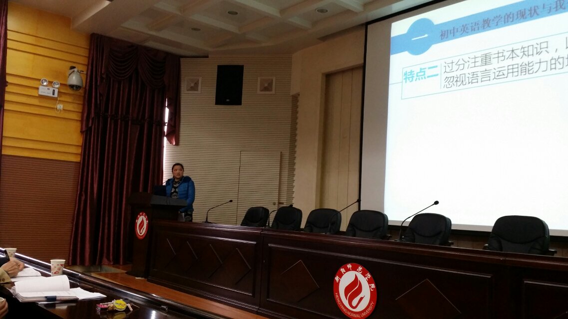 在此次报告会中,贺利燕老师以《师范生培养中专业素养与职业素养的双重考量》为主题,主要围绕以下两点与广大师生进行了分享:1、初中英语教学的现状与个人采取的对策。2、对接工作中对英语专业师范生培养的感想与反思。贺利燕老师清楚流畅的表达、生动感人的例子、着眼我系现实的感悟都引起了在场师生的强烈共鸣。
