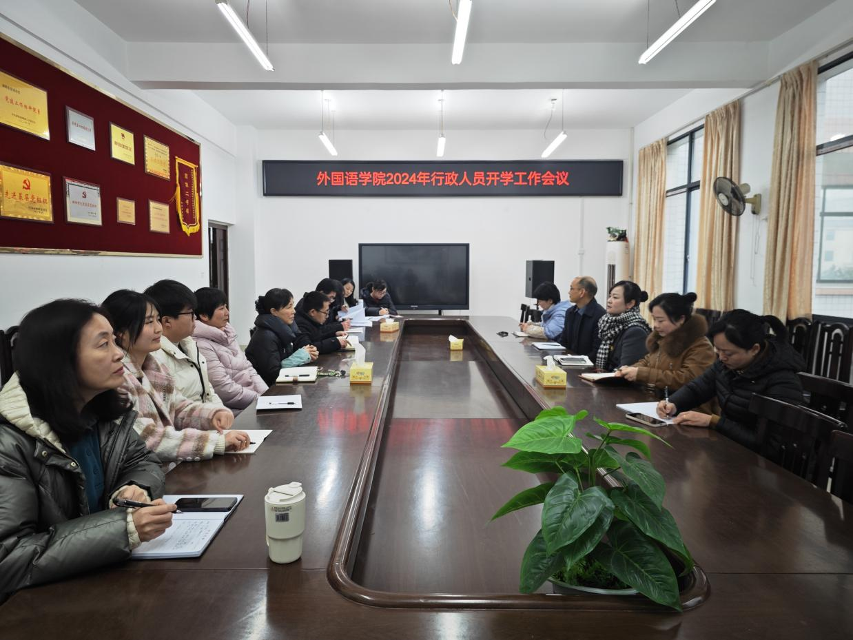 龙腾万里齐奋进,乘势而上启新程,为明确新学期工作方向,确保各项工作平稳有序高效开展,2024年2月26日上午,我院于外语楼南213会议室召开行政人员开学工作会议。会议由院党总支书记贺琴琴主持,全体行政人员参加。