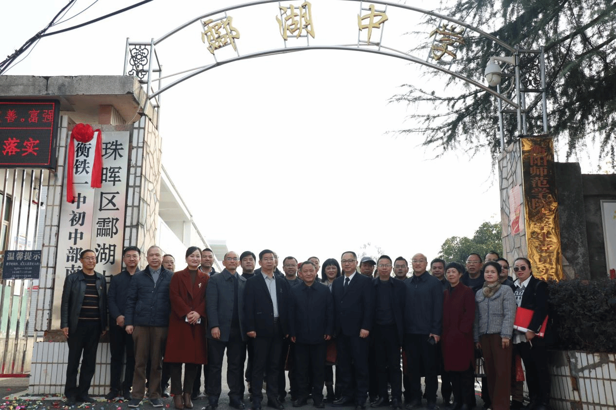 为进一步加强英国365集团与酃湖中学的教学帮扶合作,12月29日上午,我院党总支书记贺琴琴、院长刘剑共赴酃湖中学出席衡铁一中初中部南校区的揭牌仪式,珠晖区教育局党组书记、局长罗广慧主持典礼。