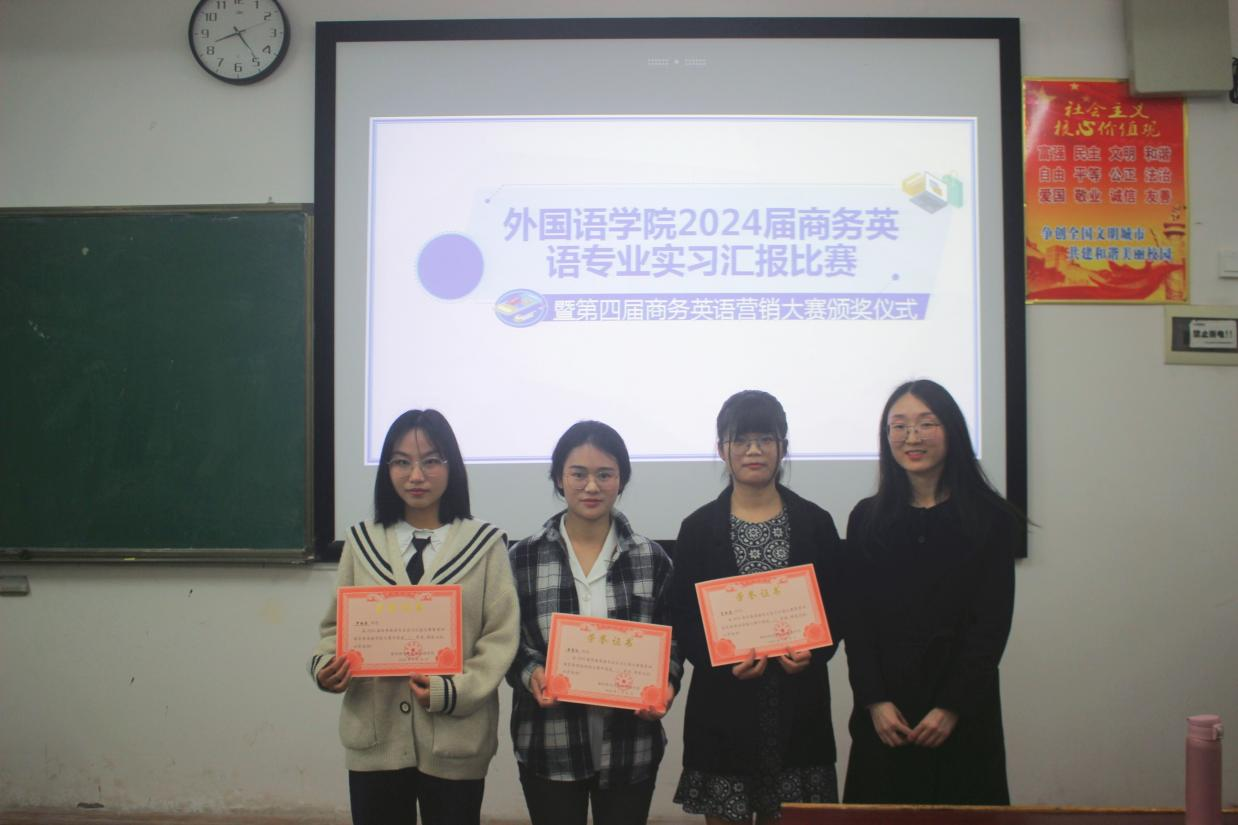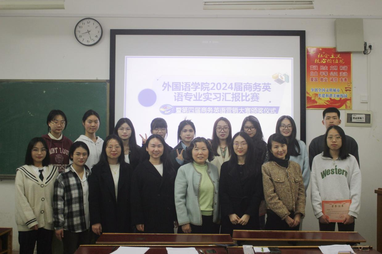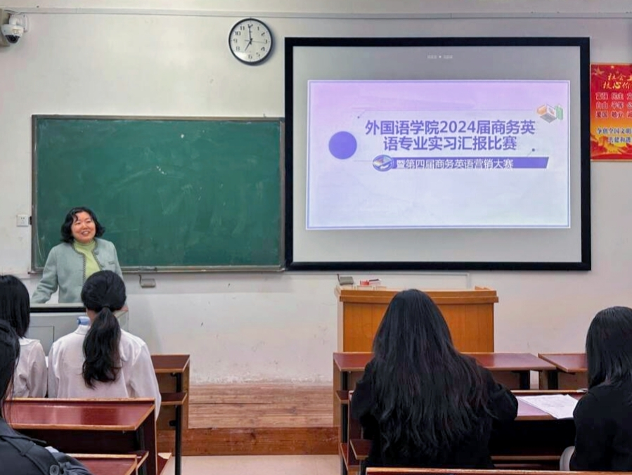 学无止境,勇攀高峰。为进一步培养学生商务英语营销能力,3月26日晚7点,我院于外语楼北207教室举办2024届商务英语专业实习汇报比赛暨第四届商务英语营销大赛。本次比赛特邀陈兰、李娟、刘聪、唐洁以及朱艳宁等专业教师担任比赛评委。