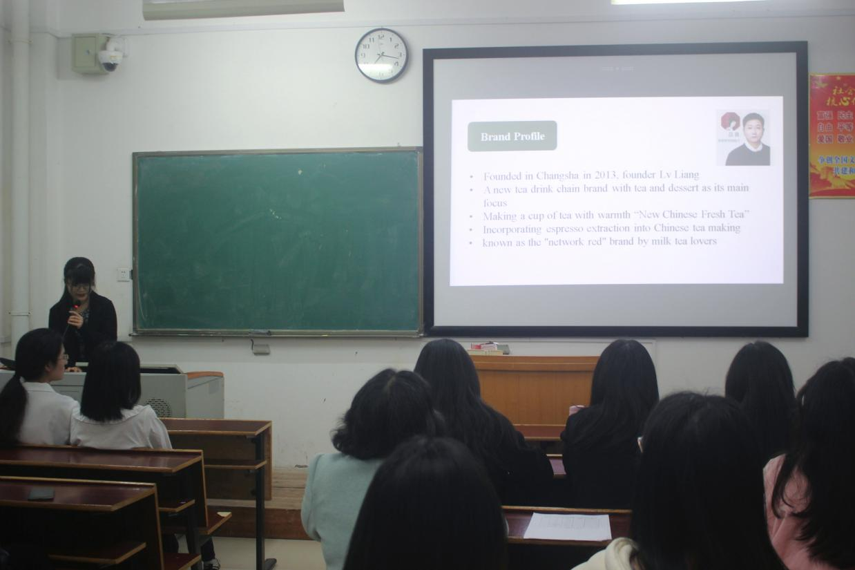 比赛中,来自2020级商务英语专业的各组选手登台口头展示加PPT展示,全程用英语表达,介绍茶颜悦色,手表,娃哈哈,颈部风扇等不同款/系列产品。不仅展现我院全面发展人才的风采,也体现了商务英语学生独特的创新理念,思维能力以及现实营销策略的结合能力。