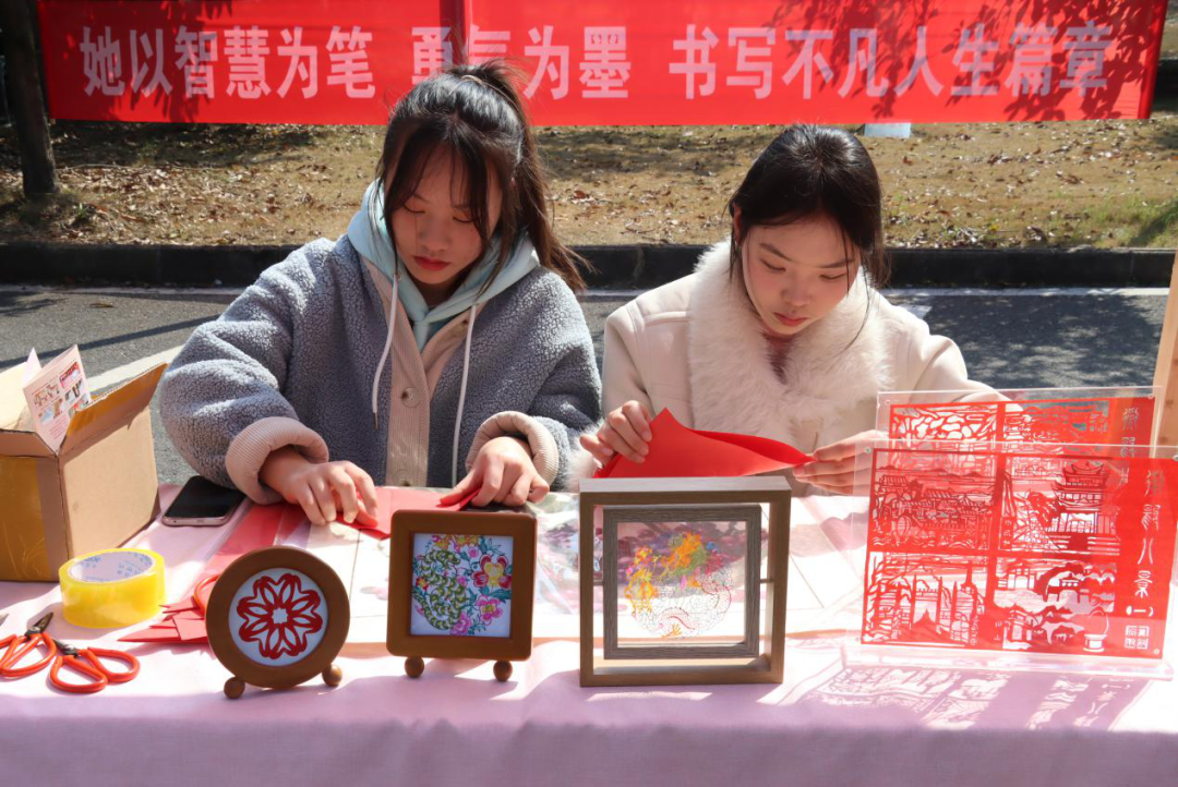 活动中,杨兰英主席一行先后参观了“她世界”工作室举办的“做更美、更巧、更自信、更健康的我”主题自画像展览与手工艺品展出、非遗文化技艺传承体验和礼仪课堂。现场气氛热烈,全院师生积极参与,充分展现了“她世界”女生教育工作室在丰富校园文化生活、促进女大学生全面发展方面的积极贡献。